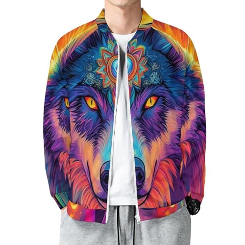 MIATCENRT Mens Sport Jacket Psychedelic Bomber Jackets, Night Sky Wolf Print Lightweight Zip Up Long Sleeve Sportswear Tops, Colorful Outwear Casual Sweatshirts Jacket Coats |