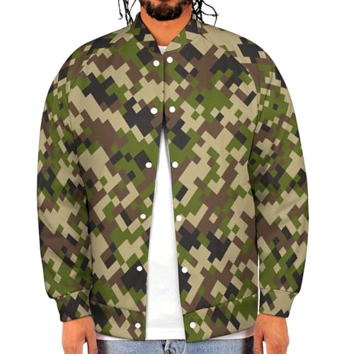 TZTTZT Pixel Green Camouflage Varsity Jacket Men - Baseball Letterman Bomber Jacket Mens Casual Stylish Coat |